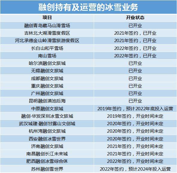 截至目前,融創(chuàng)旗下共計有5個室外滑雪場(chǎng),6個已開業室内滑雪項目以及9個規劃在建項目。