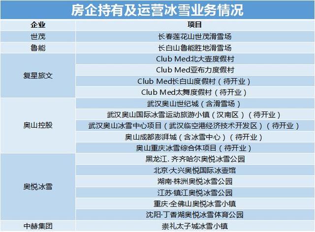 除萬科、融創之外,世茂、魯能、複星、奧(ào)山控股、奧(ào)悅冰雪以及中赫集團等多家企業亦相繼在國内涉足瞭(le)冰雪業務。
