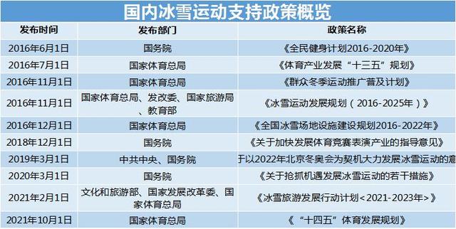 對(duì)冰雪業務而言,一方面,近兩年國家頻頻出台政策支持冰雪産(chǎn)業的發展。