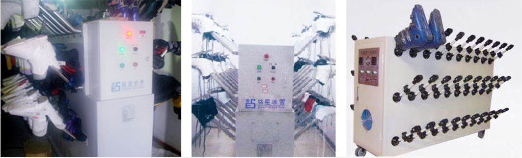 産品介紹 冰雪鞋烘幹機是冰雪場專用冰雪鞋烘幹設備(bèi),銘星冰雪鞋烘幹機採(cǎi)用先進的PTC陶瓷發熱體加熱器,電熱轉換效率高;而且出風加熱採(cǎi)用光控開關、每個出風口可單獨控制,隻有插上雪鞋後加熱器才工作,節能效果顯著。該産品採(cǎi)用臭氧消毒方式,具有烘幹、殺菌、消毒去異味和加香功能。整機採(cǎi)用全不鏽鋼制作,外形美觀、裝有4個腳輪,可輕便地移動本機,操作方便簡單。